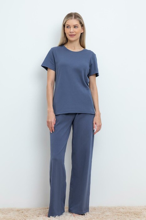 Лёгкие комфортные брюки из трикотажа с добавлением лайкры. Модель с поясом на резинке. Низ изделия обработан плоскими швами. Гладкий материал приятен к телу, не теряет форму и позволяет коже дышать.