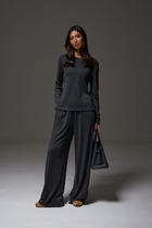 Удобные вязаные брюки со стрелкой из 100% шерсти. Шерсть в составе хорошо сохраняет тепло. Пояс на резинке.