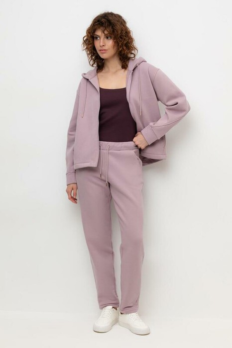 Брюки прямого кроя с боковыми карманами из футера трехнитки с начесом. Гладкий и плотный материал на основе хлопка сохраняет форму.