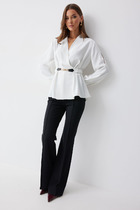 Vilatte Широкие кожаные брюки-трубы с поясом D24.272 коричневый