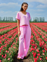 Брюки прямого кроя на резинке изготовлены из высококачественного трикотажного полотна DOUBLE FACE. Трикотаж прошел специальную каучуковую обработку, что придает ему легкость и шелковистую текстуру. Прямой крой вытягивает силуэт, формируя элегантный классический образ. Боковые карманы добавляют изделию практичности.