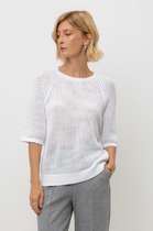 Джемпер свободного кроя ажурной вязки из итальянского хлопка. Умеренное переплетение, хлопок в составе, придают изделию форму и ощущение комфорта во время носки. Незаменим в повседневном летнем гардеробе.