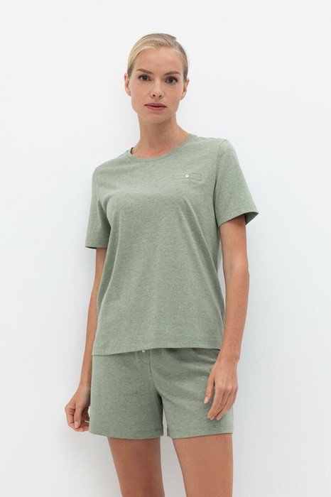 Однотонная футболка с карманом и пуговицей из меланжевого трикотажа. Гладкий материал приятен к телу и позволяет коже дышать.