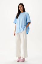 Удлиненная футболка из лёгкого набивного трикотажа супрем. Свободные рукава со спущенной линией плеча создают объём и свободный силуэт.