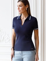 Джемпер с воротником-поло с коротким рукавом тонкой вязки из вискозы
