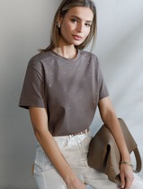 Vilatte Футболка оверсайз с принтом стразами из премиального хлопка с эластаном