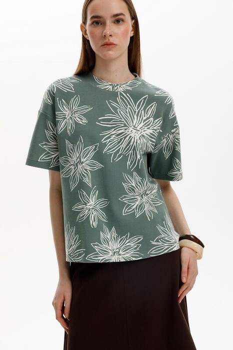 Совместные покупки Магнитогорск Женская одежда Футболки — 27.03 Very Neat фуфайка жен ЕВТ 3317/зеленый,крупные астры