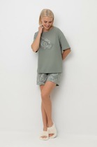 Легкий комплект для комфортного сна и отдыха. Свободная футболка с принтом и спущенной линией плеча комфортно садится по фигуре. Укороченные брюки с удобными боковыми карманами выполнены из набивного трикотажа. Гладкий материал приятен к телу и позволяет коже дышать.