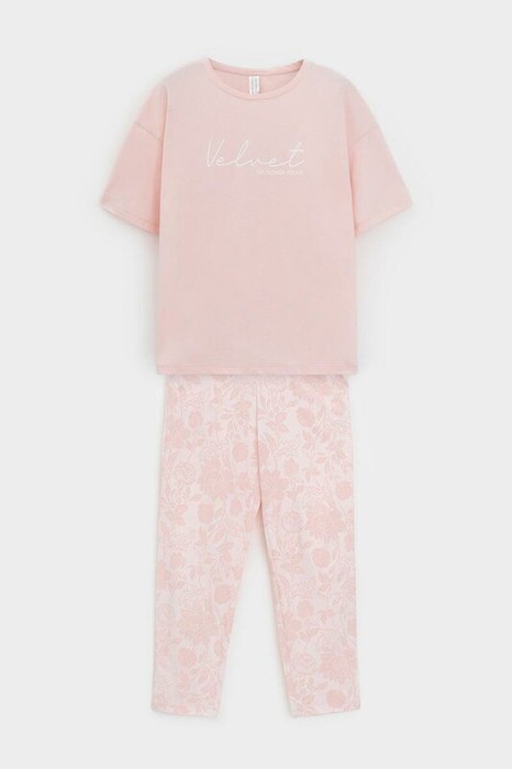 Легкий комплект для комфортного сна и отдыха. Свободная футболка с принтом и спущенной линией плеча комфортно садится по фигуре. Укороченные брюки с удобными боковыми карманами выполнены из набивного трикотажа. Гладкий материал приятен к телу и позволяет коже дышать.