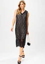 Платье ажурной вязки в универсальном бежевом цвете из итальянского хлопка. Дополняет изделие внутренний невесомый подклад из премиального бифлекса телесного цвета. Хлопок в составе сохраняет форму и дарит ощущение комфорта во время носки.