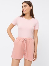 Лёгкие комфортные шорты на резинке из набивного трикотажа . Низ изделия обработан плоскими швами. Гладкий материал приятен к телу, не теряет форму и позволяет коже дышать.