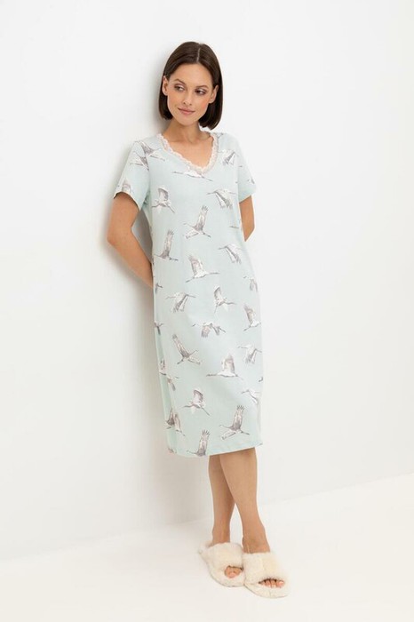 Very Neat сорочка ночная жен Е 10054/туманный голубой,журавли