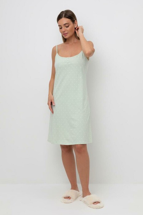 Элегантная женская сорочка с регулируемыми бретелями для комфортного сна. На груди декоративные пуговицы. Гладкий материал приятен к телу и позволяет коже дышать.