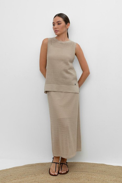 Вязаная ажурная юбка макси с подкладом. Состав 50% хлопок, 50% акрил. Благодаря акрилу в составе изделие не пилингуется.