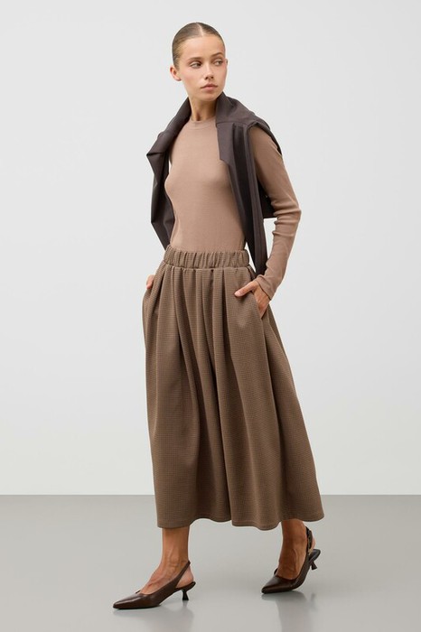 Юбка в складку выполнена из инновационного высококачественного трикотажного полотна DOUBLE FACE, который сочетает в себе мягкость натуральных волокон и долговечность современных технологий. Мягкая резинка на поясе обеспечивает комфортную посадку без ощущения давления и дискомфорта.