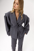 Тёплая трикотажная куртка на молнии с высоким воротником стойкой и широким поясом. Произведена из мягкого набивного трикотажного футера трёхнитки. В составе 80% натурального хлопка и 20% полиэстера, при этом полиэстер ввязан внутрь по особой технологии и не соприкасается с кожей.