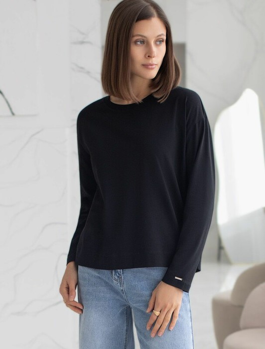 Совместные покупки Магнитогорск Женская одежда Футболки — Vilatte Базовый лонгслив из премиального хлопка с эластаном D49.147 черный