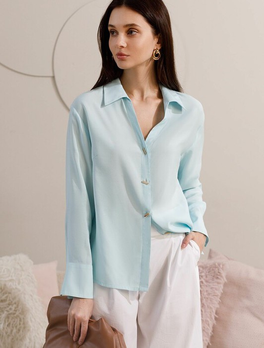 Блузка светло-оливкового цвета сочетает в себе комфорт и элегантность благодаря материалу из вискозы с лиоцеллом. Аккуратный отложной воротник подчеркивает утонченность образа, а продолговатые металлические пуговицы золотистого цвета добавляют выразительный акцент и придают блузке благородный вид. Широкие манжеты на рукавах привлекают внимание и делают силуэт современным. Спущенная линия плеча формирует расслабленный, но стильный внешний вид, что идеально для тех, кто ценит индивидуальность и уверенность в деталях. Крой продуман так, чтобы подчеркивать достоинства фигуры и на больших размерах, создавая гармоничный силуэт без лишних усилий. Ткань из вискозы с добавлением лиоцелла обеспечивает приятные ощущения и отличную посадку, струится на теле и охлаждает в жаркую погоду. Рубашка легко впишется как в деловой гардероб, так и в повседневный стиль, позволяя выглядеть безупречно независимо от ситуации.
