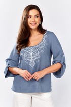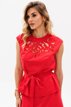 Блузка свободного силуэта выполнена из смесовой струящейся ткани. Модель в вертикальную полоску дополнена золотистыми рельефными пуговицами. Свободный силуэт подходит для любой фигуры. Для идеального роскошного образа используйте в качестве низа брюки светлых тонов. На спинке изделия фирменный металлический логотип бренда.