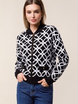 Vilatte Бомбер двуслойной жаккардовой вязки с кашемиром D31.131 черный-белый