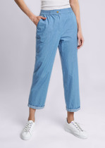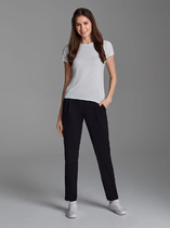 Брюки-бананы в стиле casual выполненны из хлопкового твила. Натуральный материал ткани обеспечивает высокий уровень комфорта, отличную гигроскопичность и воздухопроницаемость. Эластан в составе изделия минимизрует деформацию модели и продлевает срок носки. Брюки дополнены защипами и боковыми карманами. Зауженный силуэт подчеркивает достоинства и скрывает недостатки фигуры.