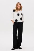 Брюки-дудочки выполнены из джерси. Модель дополнена резинкой сзади, одним вместительным карманом спереди и небольшими боковыми разрезами. Заутюженные стрелки и посадка на талии визуально вытягивают силуэт. Изделие хорошо держит форму, отлично тянется и почти не мнется во время использования. Идеальный вариант в офис или в повседневный классический стиль.
