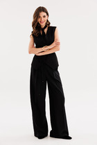 Брюки-палаццо выполнены из фактурной черно-серой поливискозы. . Модель дополнена боковыми карманами и отлично подойдет как для строгого делового образа с блузкой и жакетом, так и для более расслабленного с футболкой и водолазкой. Эластичный материал изделия поддерживает оптимальный микроклимат, формоустойчивость и комфорт в течение всего дня.