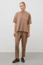 Брюки выполнены из хлопкового твила. Изделие дополнено двумя вариантами шлёвок, что позволяет использовать ремни разной ширины. Модель имеет два боковых и один задний карман. Защипы у пояса и стрелки вдоль брючины визуально вытягивают силуэт и подчеркивают талию. Благодаря наличию эластана в составе изделие сохранит свой безупречный внешний вид в течение долгого времени. Обладает высокой воздухопроницаемостью, в брюках будет комфортно даже в жаркое время года.