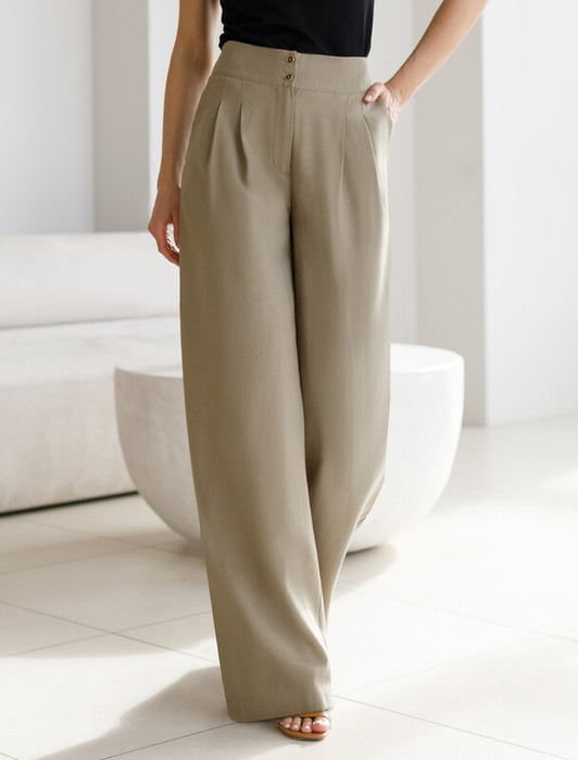 Совместные покупки Магнитогорск Женская одежда Брюки — Vilatte Брюки-палаццо из плотного лиоцелла D24.267 св.оливковый