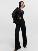 Брюки-палаццо выполнены из костюмной ткани. Свободная модель дополнена карманами и поясом на резинке сзади. Посадка на талии и заутюженные стрелки визуально удлиняют ноги и вытягивают силуэт. Идеальный вариант для офисного дресс кода или в повседневный классический стиль.