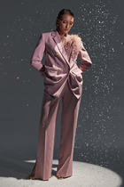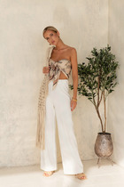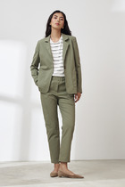 Брюки свободного кроя выполнены из костюмной ткани в полоску. Модель с карманами и поясом на резинке дополнена регулируемым шнурком из основной ткани. Изделие не сковывает движений и подходит для любого типа фигуры. Сочетается в костюме с жилетом D27.001