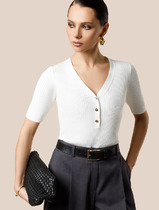 Vilatte Джемпер тонкой вязки из вискозы с нейлоном D39.337 натуральный белый