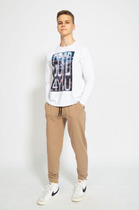 Джемпер с круглым воротом выполнен из премиального эластичного футера двухнитки. Свободный силуэт не сковывает движений. Модель дополнена вышивкой с фирменным логотипом бренда. Сочетается в костюме с брюками U44.005.
