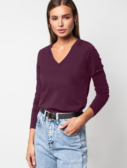 Совместные покупки Магнитогорск Женская одежда Джемперы, свитеры, водолазки — Vilatte Джемпер из премиального хлопка с эластаном D49.958 бургунди