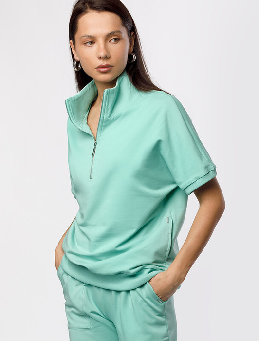 Vilatte Джемпер из тонкого премиального футера с эластаном D49.080 мятный
