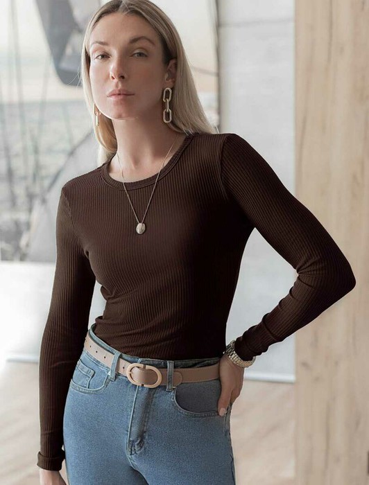 — Vilatte Джемпер из трикотажа в широкий рубчик D49.106 шоколад