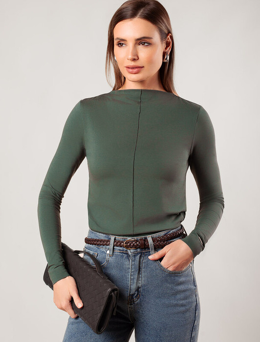 Совместные покупки Магнитогорск Женская одежда Джемперы, свитеры, водолазки — Vilatte Джемпер с цельнокроеным воротом из премиального хлопка D49.113 оливковый