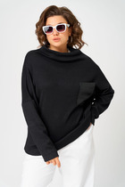 Джемпер с вырезом лодочкой и прозрачными рукавами создает женственный и элегантный образ. Тело джемпера черного цвета выполнено из плотного вискозного трикотажа, обеспечивающего комфорт, в то время как рукава из тонкой сетки создают стильный контраст. Глубокий вырез лодочка подчеркивает линию плеч и создает элегантный силуэт. Идеальный выбор для стильных образов!