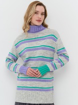 Джемпер с вырезом лодочкой и прозрачными рукавами создает женственный и элегантный образ. Тело джемпера черного цвета выполнено из плотного вискозного трикотажа, обеспечивающего комфорт, в то время как рукава из тонкой сетки создают стильный контраст. Глубокий вырез лодочка подчеркивает линию плеч и создает элегантный силуэт. Идеальный выбор для стильных образов!