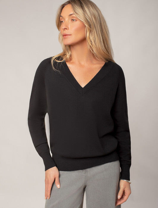 Vilatte Джемпер тонкой вязки из хлопка с кашемиром D39.352 черный
