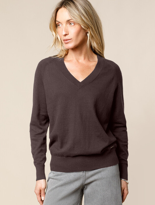 Джемпер тонкой вязки выполнен из хлопка с добавлением кашемира. Модель с V-вырезом свободного силуэта. Мягкая и очень приятная пряжа в рубчик совершенно не колется, сохраняет тепло при этом не перегревая, гарантируя безупречный комфорт.