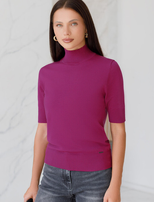 Совместные покупки Магнитогорск Женская одежда Джемперы, свитеры, водолазки — Vilatte Джемпер тонкой вязки из хлопка с нейлоном D34.201 пурпурный
