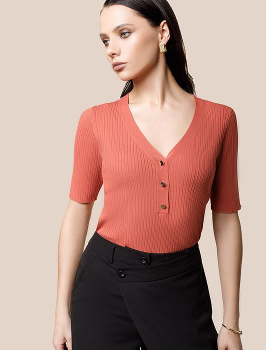 Vilatte Джемпер тонкой вязки из вискозы с нейлоном D39.337 терракотовый