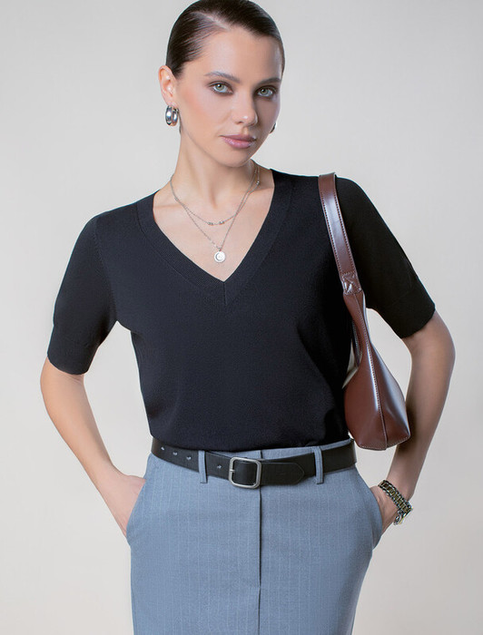 — 22.03 Vilatte Джемпер тонкой вязки из вискозы с нейлоном D39.355 черный