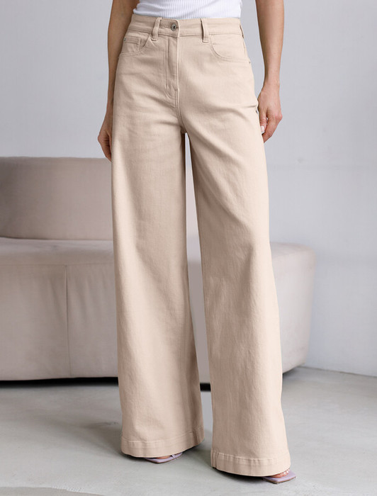 Джинсы-трубы выполнены из мягкого хлопкового денима с эластаном. Модель свободного кроя с посадкой на талии визуально вытягивает силуэт и подчеркивает достоинства. Отлично впишется в расслабленные летние образы. Наличие эластана в составе способствует формустойчивости и комфортной носке. Изделие дополнено брендированным патчем из эко-кожи и сочетается в костюме с курткой D51.033