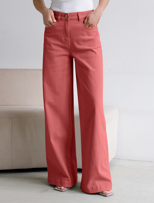 Джинсы-трубы выполнены из мягкого хлопкового денима с эластаном. Модель свободного кроя с посадкой на талии визуально вытягивает силуэт и подчеркивает достоинства. Отлично впишется в расслабленные летние образы. Наличие эластана в составе способствует формустойчивости и комфортной носке. Изделие дополнено брендированным патчем из эко-кожи и сочетается в костюме с курткой D51.033