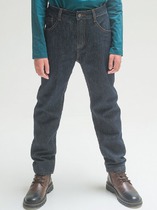 Синие джинсы выполнены из эластичного денима. Внутренняя сторона джинс из мягкого флиса, обеспечит тепло и комфорт на целый день. Есть дополнительная фиксация талии при помощи внутренней резинки. Изделие дополнено высококачественной металлической фурнитурой с логотипом бренда.