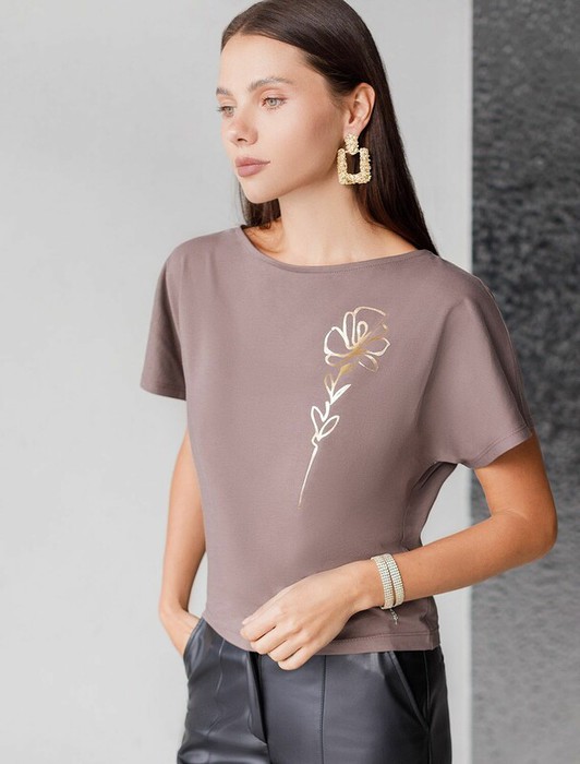 Совместные покупки Магнитогорск Женская одежда Футболки — Vilatte Футболка D49.133 кофейный_цветок