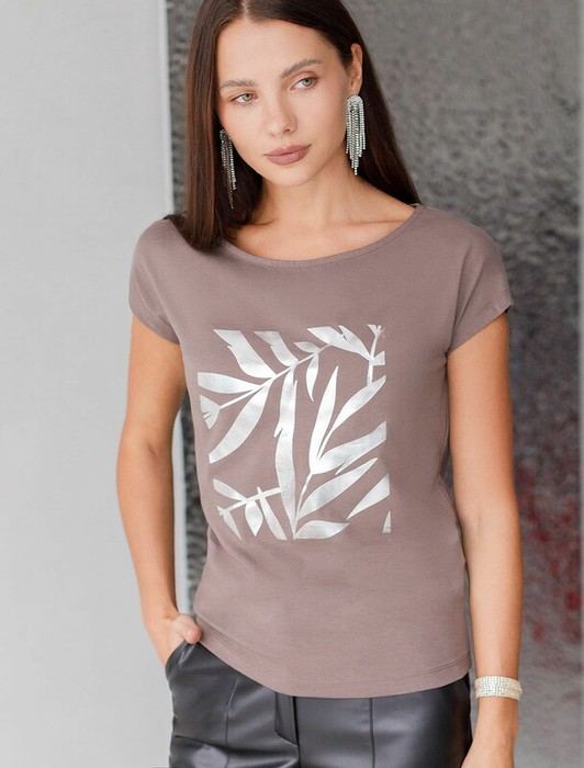 Совместные покупки Магнитогорск Женская одежда Футболки — 27.03 Vilatte Футболка D49.134 кофейный_листики
