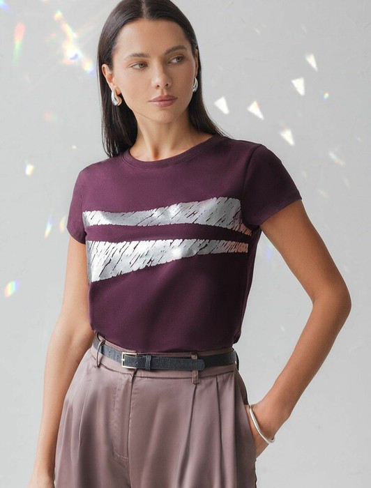 Совместные покупки Магнитогорск Женская одежда Футболки — Vilatte Футболка D49.135 бургунди_штрихи